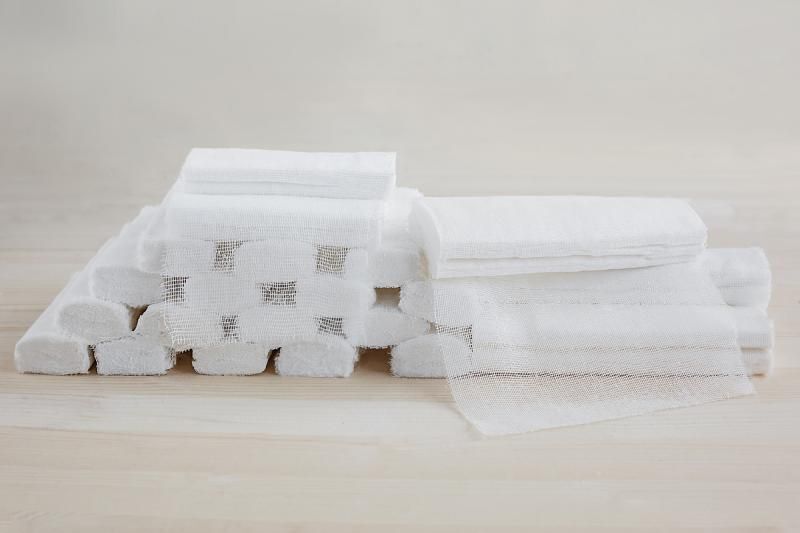Бинт медицинский марлевый нестерильный в групповой упаковке изготовлен из впитывающего материала - марли медицинской - плотностью 28 ± 2 г/м2.