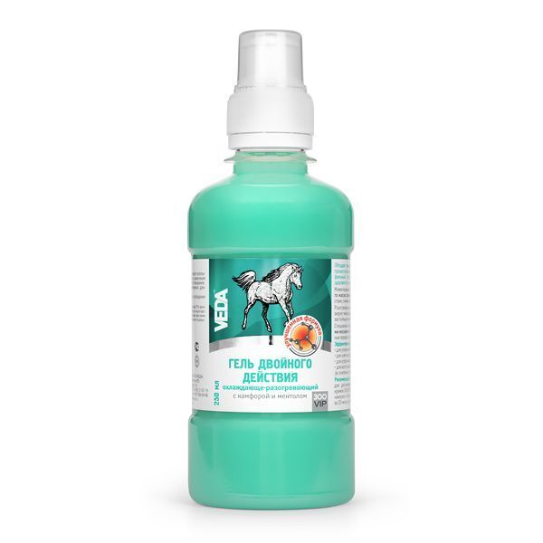 В состав геля входят ментол, экстракт перца стручкового, экстракт прополиса, эфирное масло гвоздики, эфирное масло эвкалипта.Первоначально развивается охлаждающее действие эфирного масла эвкалипта и ментола, которые быстро и глубоко проникают в ткани, моментально облегчая состояние лошади. Затем начинается разогревающее и расслабляющее воздействие камфоры и экстракта перца, которые снижают болезненные ощущения, стимулируют привлечение в место воспаления дополнительных факторов иммунной системы, ускоряя процессы восстановления и заживления травмированных тканей. Активизация микроциркуляции обеспечивает устранение застойных явлений и снижение риска развития воспалительных процессов, связанных с поверхностными травмами (без нарушения целостности тканей) — ушибами, гематомами, растяжениями, отеками.