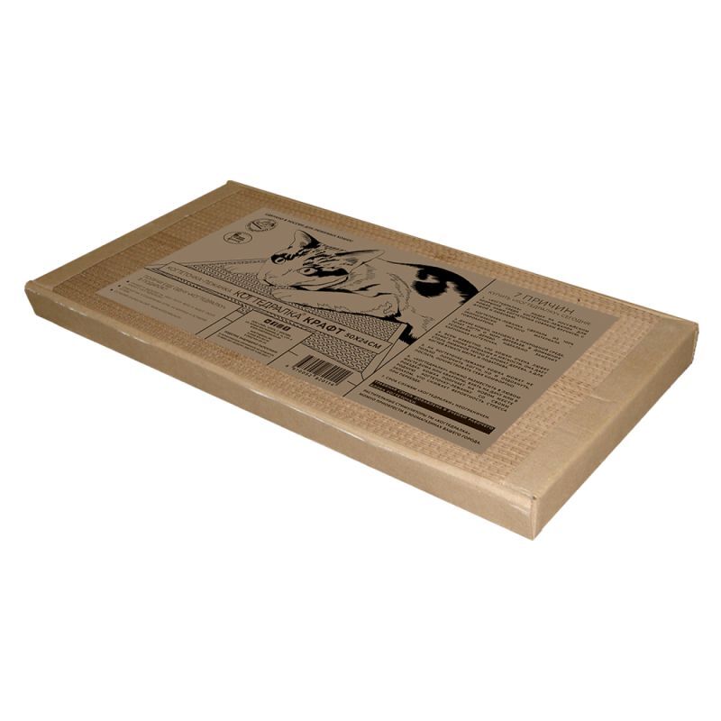 Картонная когтеточка по доступной цене. Срок службы - до года и более. Зависит от темперамента питомца.