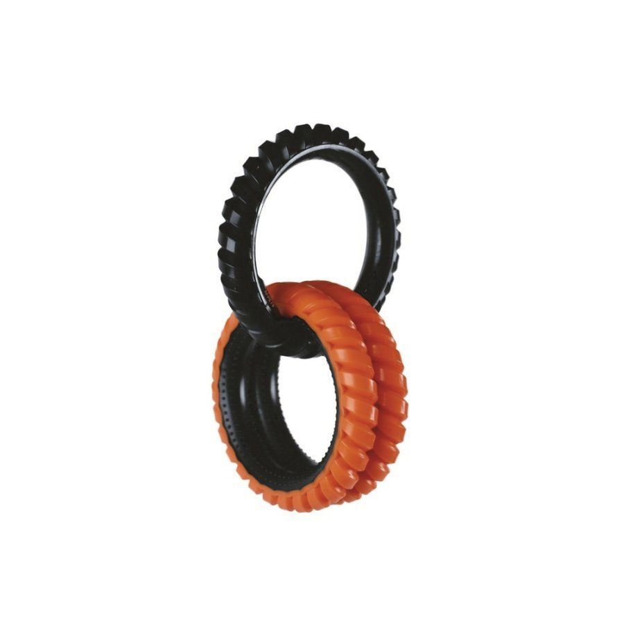 Кольцо имеет специальную форму и сочетает в себе три кольца, которые позволяют собаке легко захватывать игрушку зубами и тянуть ее в разных направлениях. Таким образом, упражнения с игрушкой помогают укрепить мышцы челюсти, шеи, спины и ног собаки.