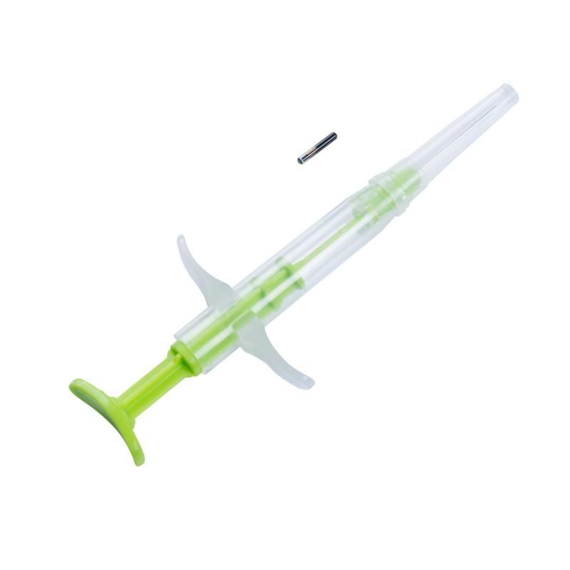 - Особая форма иглы, а также применение высококачественной стали, обеспечивают надежное безболезненное введение и быстрое ее извлечение после имплантации чипа.