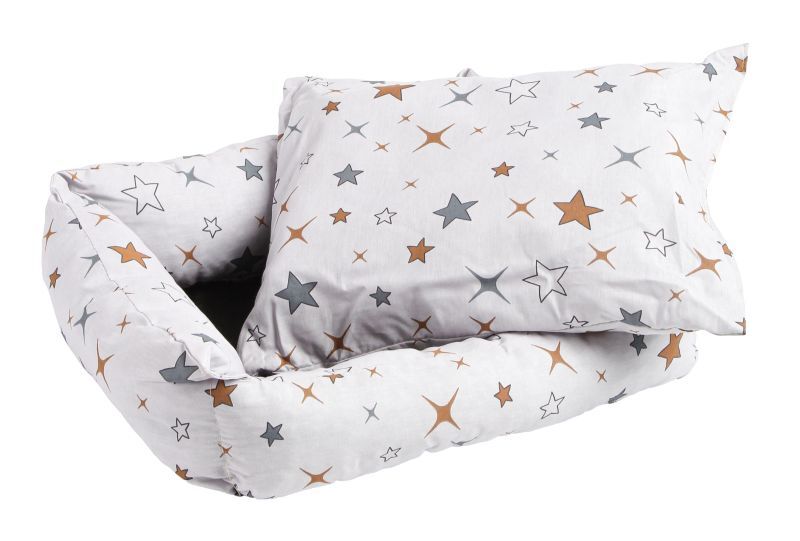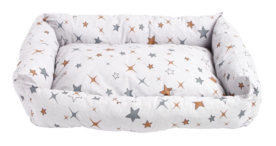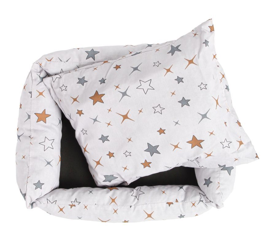- Качественный материал: Поплин — это плотная хлопчатобумажная ткань полотняного переплетения, которая имеет мелкий поперечный рубчик благодаря использованию нитей утка и основы разной толщины. Поплин обладает высокой прочностью и износостойкостью, а также обеспечивает долговечность лежанки и лёгкость в уходе за ней.