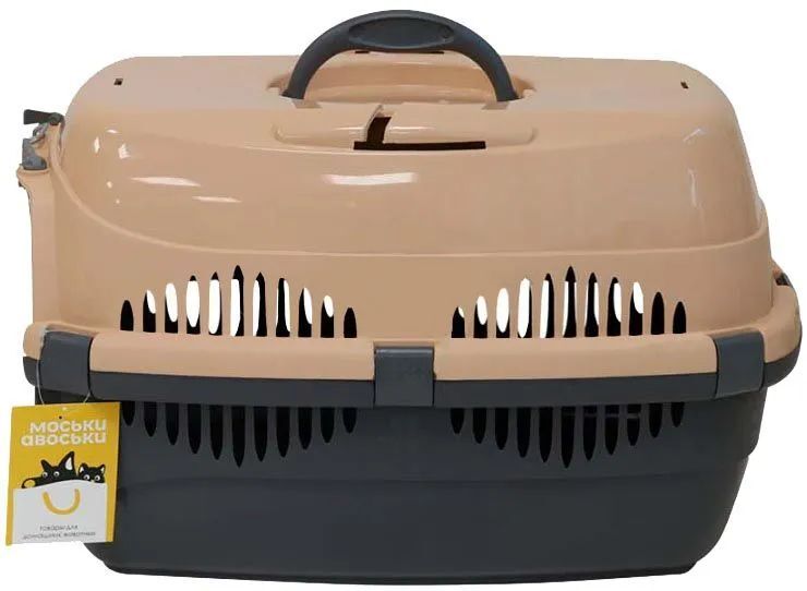 Пластиковая переноска с металлической дверцей.