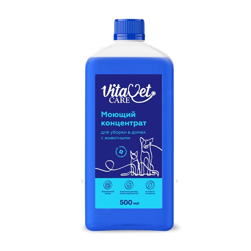Представляем вам Моющий концентрат VitaVet Care, специально разработанный для домов с животными. Это незаменимое для владельцев домашних животных средство, которое не только эффективно удаляет различные загрязнения, но и нейтрализует неприятные запахи, оставляя свежий и приятный аромат.