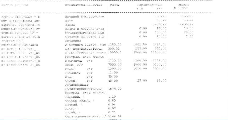 Норма ввода: 100-150 грамм на 1 гол. в сутки.