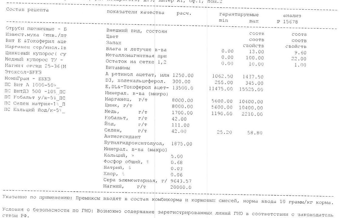 Кормовая добавка для с/х животных