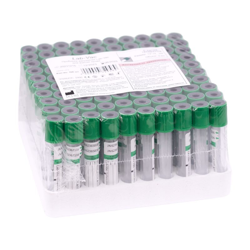 Пробирки содержат реагент из расчета 12-30 МЕ гепарина на 1 мл крови.