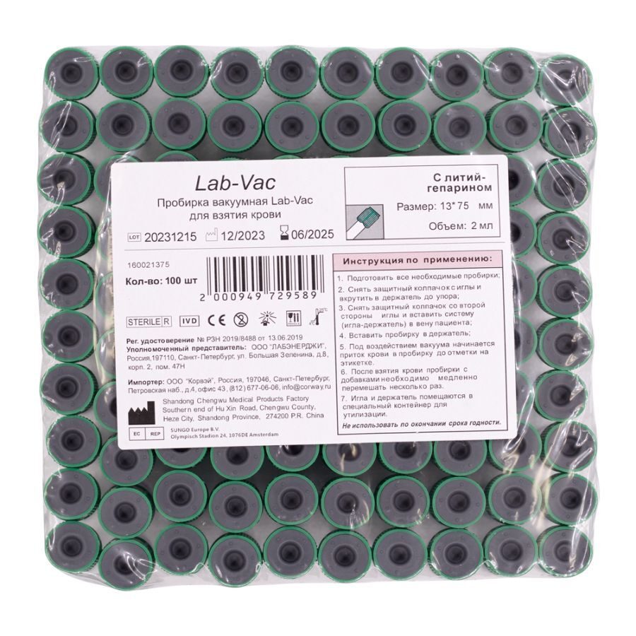 Упаковка: пробирки упакованы в штатив из пенополистирола и в защитную пленку. На каждом штативе есть краткая инструкция по применению. Пробирки 13х75 мм упакованы в штатив по 100 штук.