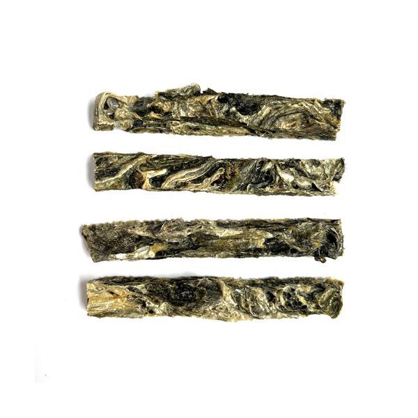 Рыбное лакомство Woofs для собак (сушеное) сделано из 100% шкуры трески, которая не только вкусна, но и ее натуральная, грубая текстура помогает удалить зубной камень и налет с зубов вашей собаки.