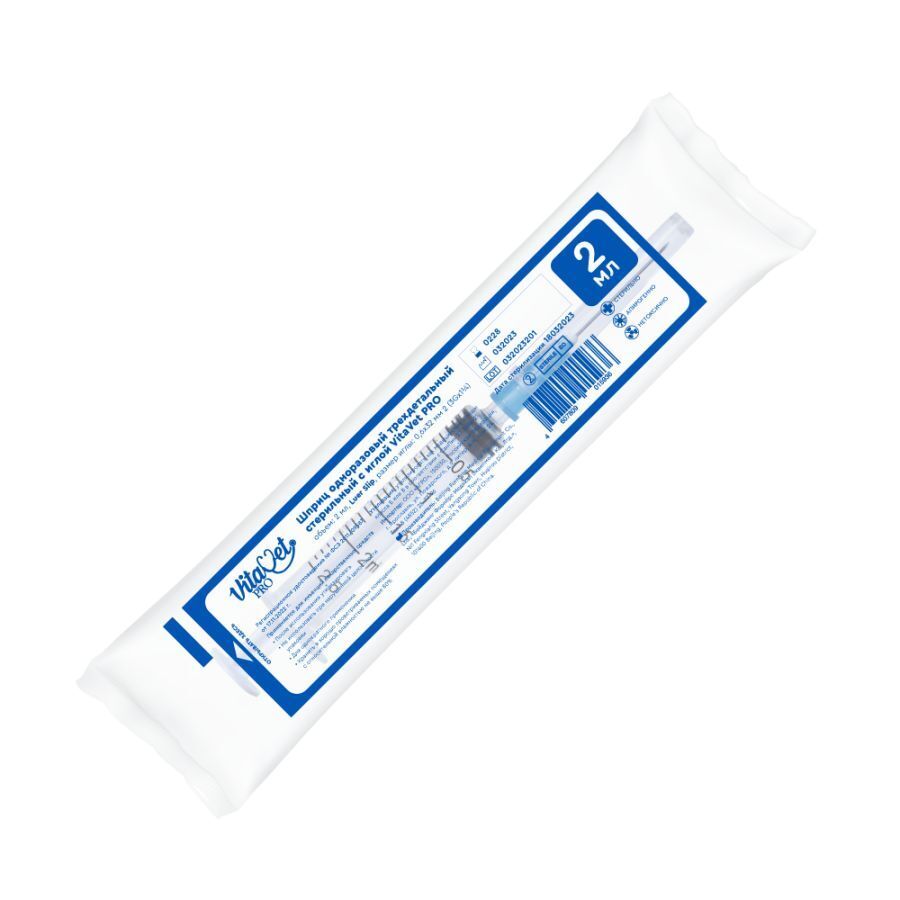 Шприц инъекционный трехкомпонентный VitaVet Pro (ВитаВет), одноразовый.
