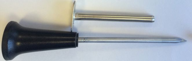Инструмент для хирургического вмешательства при тимпании (болезни, возникающей в результате скопления огромного количества газов в рубце парнокопытных сельскохозяйственных животных) у крупного и мелкого рогатого скота. Это инструмент, используемый для прокола патологических и анатомических полостей с целью удаления из них газов или жидкостей. Состоит из металлического стилета круглой формы, один конец которого сточен в виде трёхгранной пирамиды, а другой вмонтирован в рукоятку, и металлической трубки (гильзы) со щитком, надевающейся на стилет. Острый стилет изготовлен из высокопрочной стали, что исключает возможность поломки инструмента во время проведения процедуры. Прокалывание рубца должен производить только специалист с ветеринарным образованием.